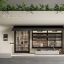 现代咖啡店门头门面 座椅 折叠 遮阳棚 店招 花箱