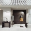 侘寂风女装店 杜邦纸灯箱背景 中岛 服装 试衣间 陶罐枯枝