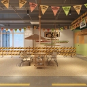 现代露营主题自助餐厅 公仔雕塑 餐车 组合 遮阳伞 饮料柜