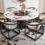 新中式餐桌椅组合 圆形餐桌 餐椅 单椅 背景墙 圆形 六人 圆餐桌椅