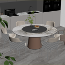 现代大理石餐桌椅组合 圆形岩板 六人 皮革靠背餐椅 橱柜酒柜