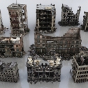 现代建筑废墟组合 游戏场景 建筑废墟 废墟石头 工地废墟