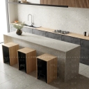 中古风吧台餐桌椅组合 大理石吧台 实木方凳 实木厨柜 燃气灶 水龙头