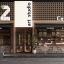 现代咖啡店门头 折叠 水泥砖 店招灯牌 户外椅