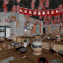 工业风火锅店 鸡煲店 实木餐桌椅组合 吊灯 灯笼 墙饰
