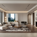 奶油欧式家居客厅 横厅 无主灯客厅