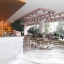 现代北欧咖啡厅 粉色咖啡店 北欧餐桌椅组合 白色大理石吧台 粉色轨道射灯 饰品陈列展示墙