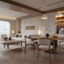 新中式宋式客餐厅 沙发茶几组合 餐桌椅 餐边柜 吊灯 台灯