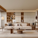 新中式中式宋式客餐厅 沙发茶几组合 新中式书桌椅组合 新中式餐桌椅组合 茶室柜 客餐厅书房一体