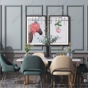 北欧现代餐桌椅花瓶组合 金属吊灯 挂画装饰画 绿植盆栽
