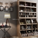 工业风书柜装饰柜圆几相框墙饰地毯书籍饰品